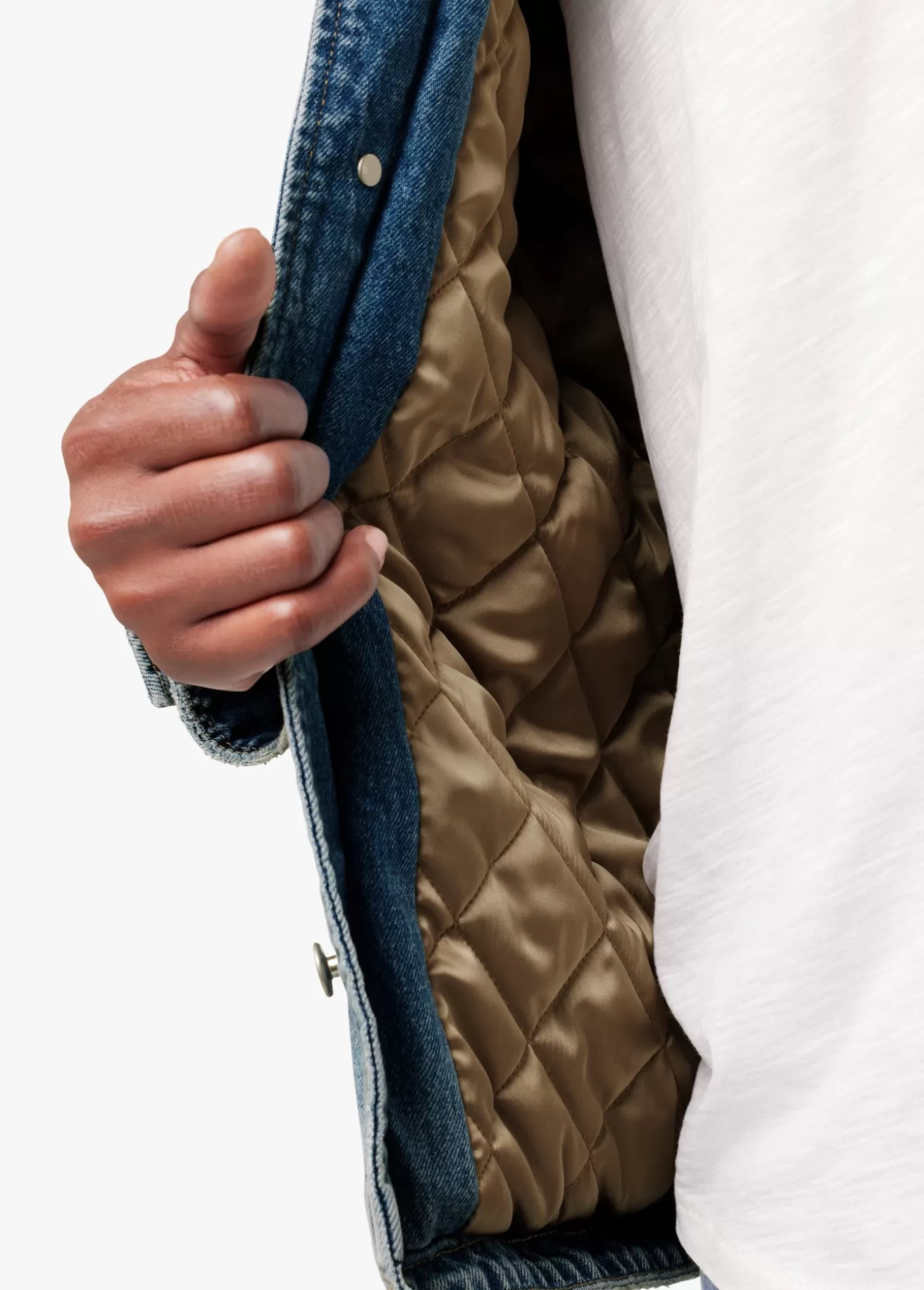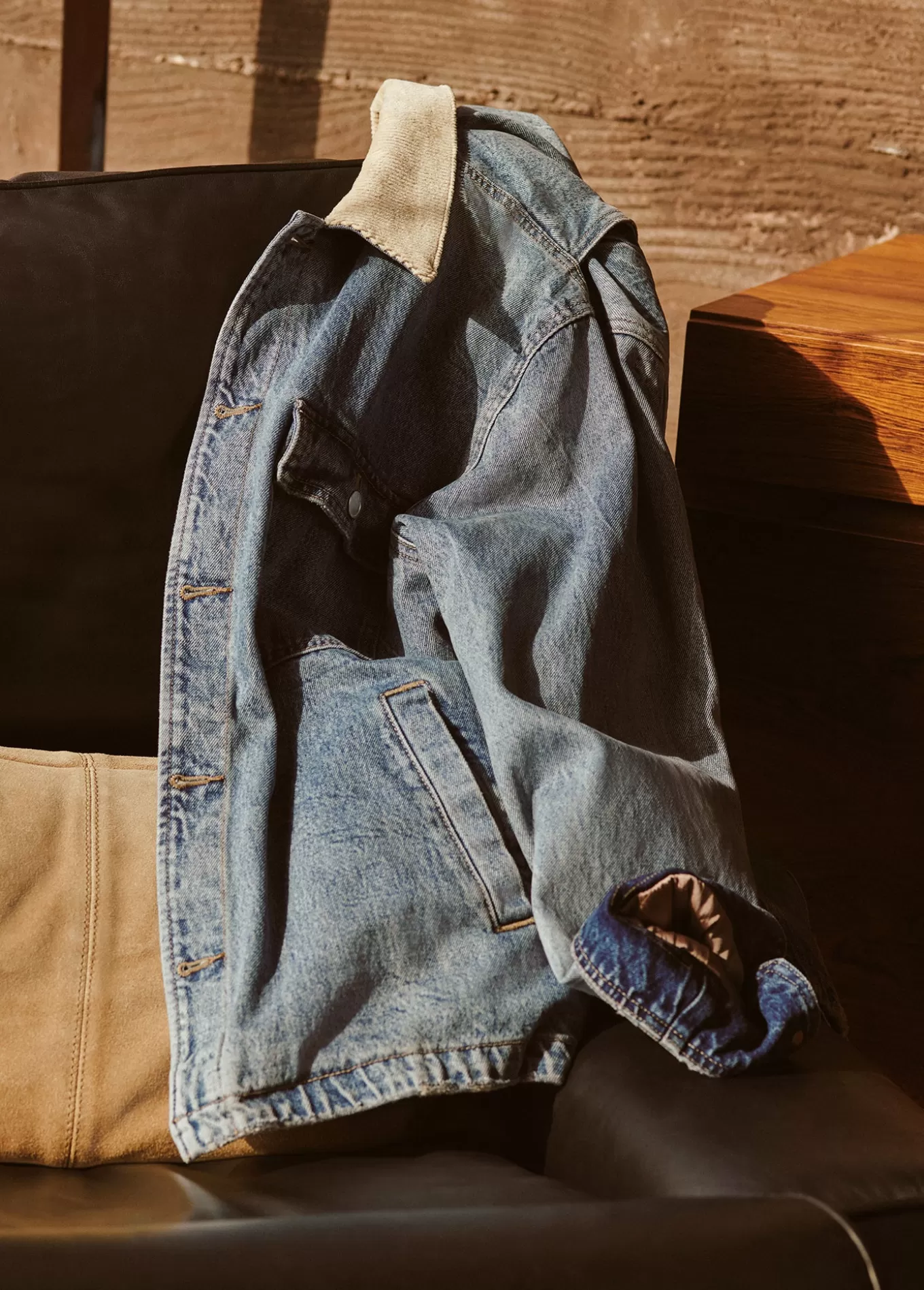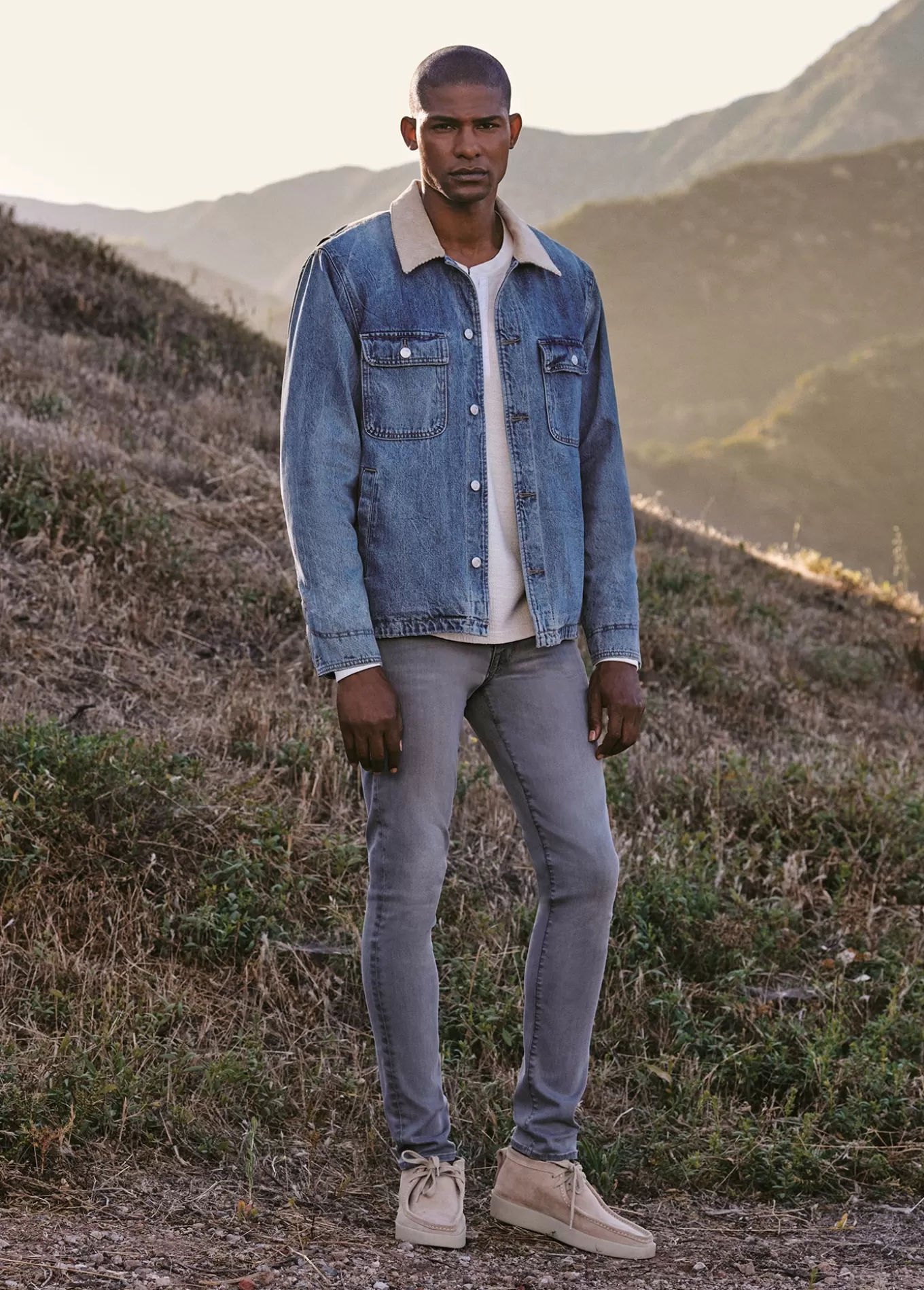 Cabin life, reinvented. The timeless Barn Jacket gets a modern look with a corduroy collar and washed down rigid denim. The quilted interior padding adds warmth without bulk, the back is constructed for added movement, and there's plenty of pockets to store your stuff. The best part? It's broken in and super comfortabl
