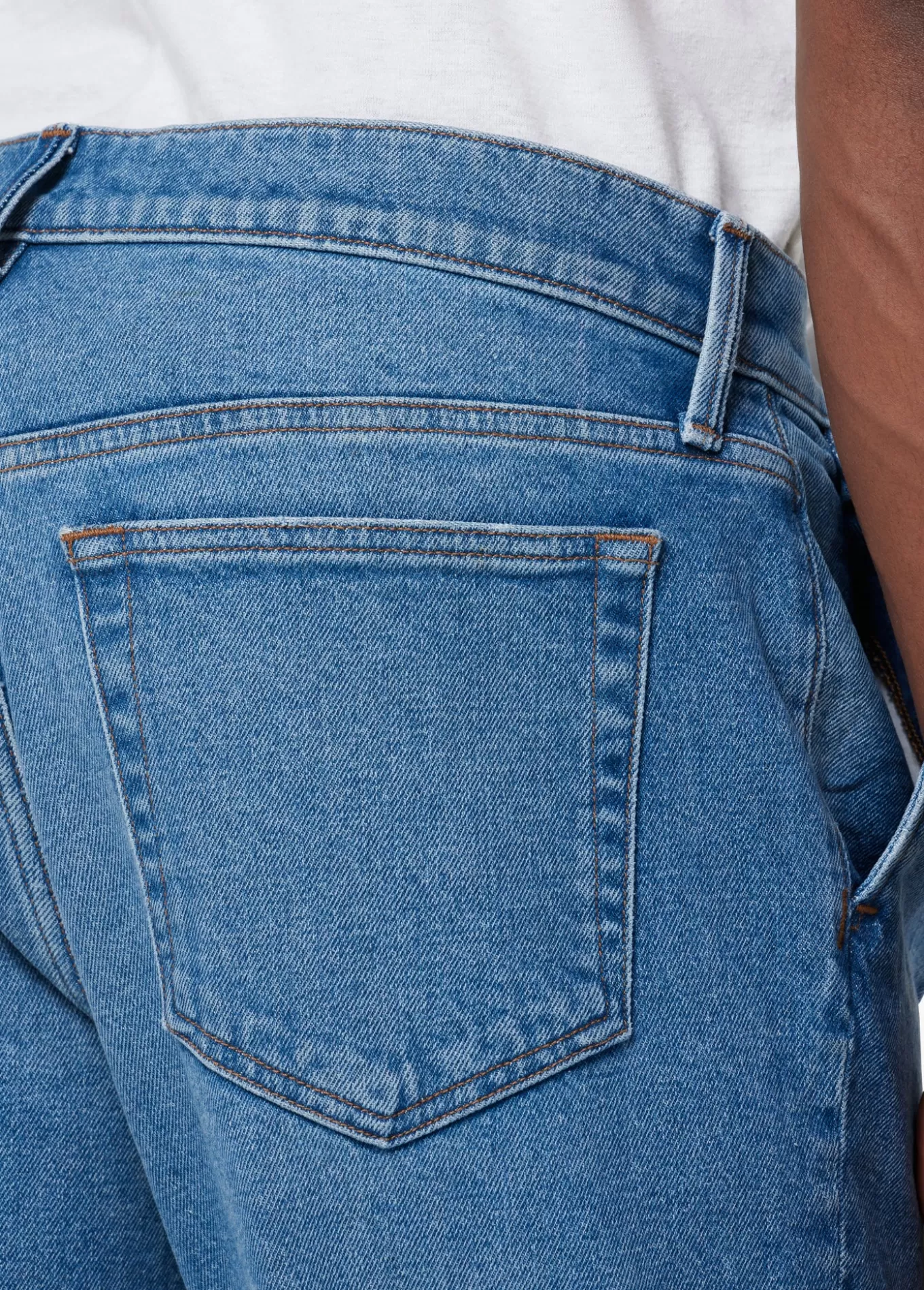 With a slightly tapered, cropped length and timeless five-pocket construction, the Diego is cut from Kinetic stretch denim so these jeans keep their shape and comfort after each wear. The 'Doxon' wash is medium-light finished with top whiskering.10.5” RISE31; INSEAM 91% COTTON, 8% RECYCLED COTTON, 1% ELASTANE MODEL IS