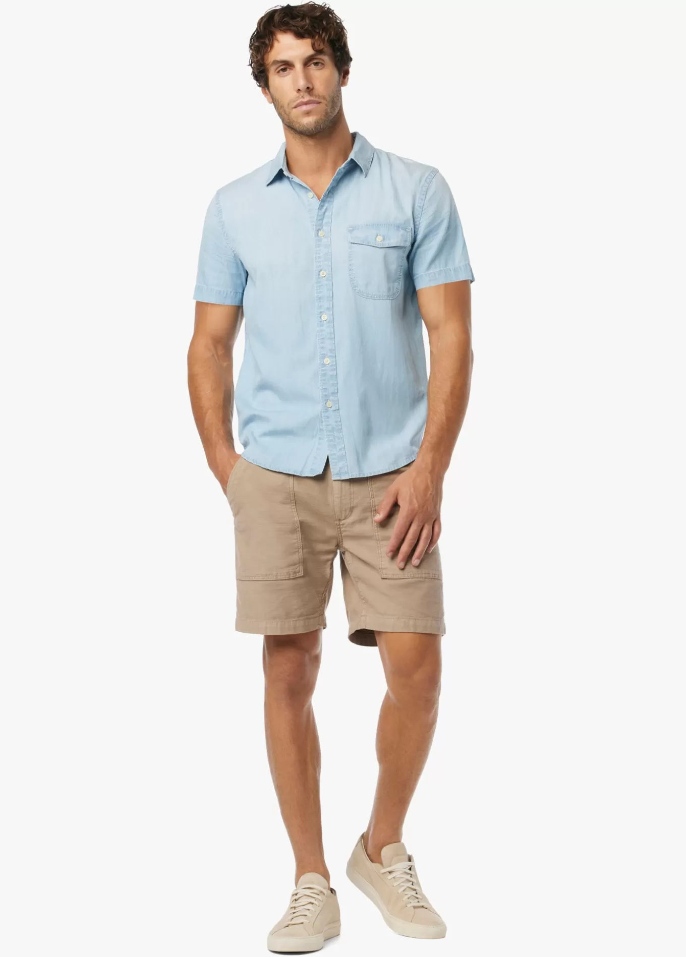 The Howard Shirt is a short sleeve button down with a vintage style patch pocket detail on the front chest for an added detail. Cut from a breathable tencel-blend fabric in a faded indigo, this shirt is guaranteed to keep you both cool and stylish with a relaxed warm weather vibe.65% TENCEL, 35% COTTONMODEL IS WEARING
