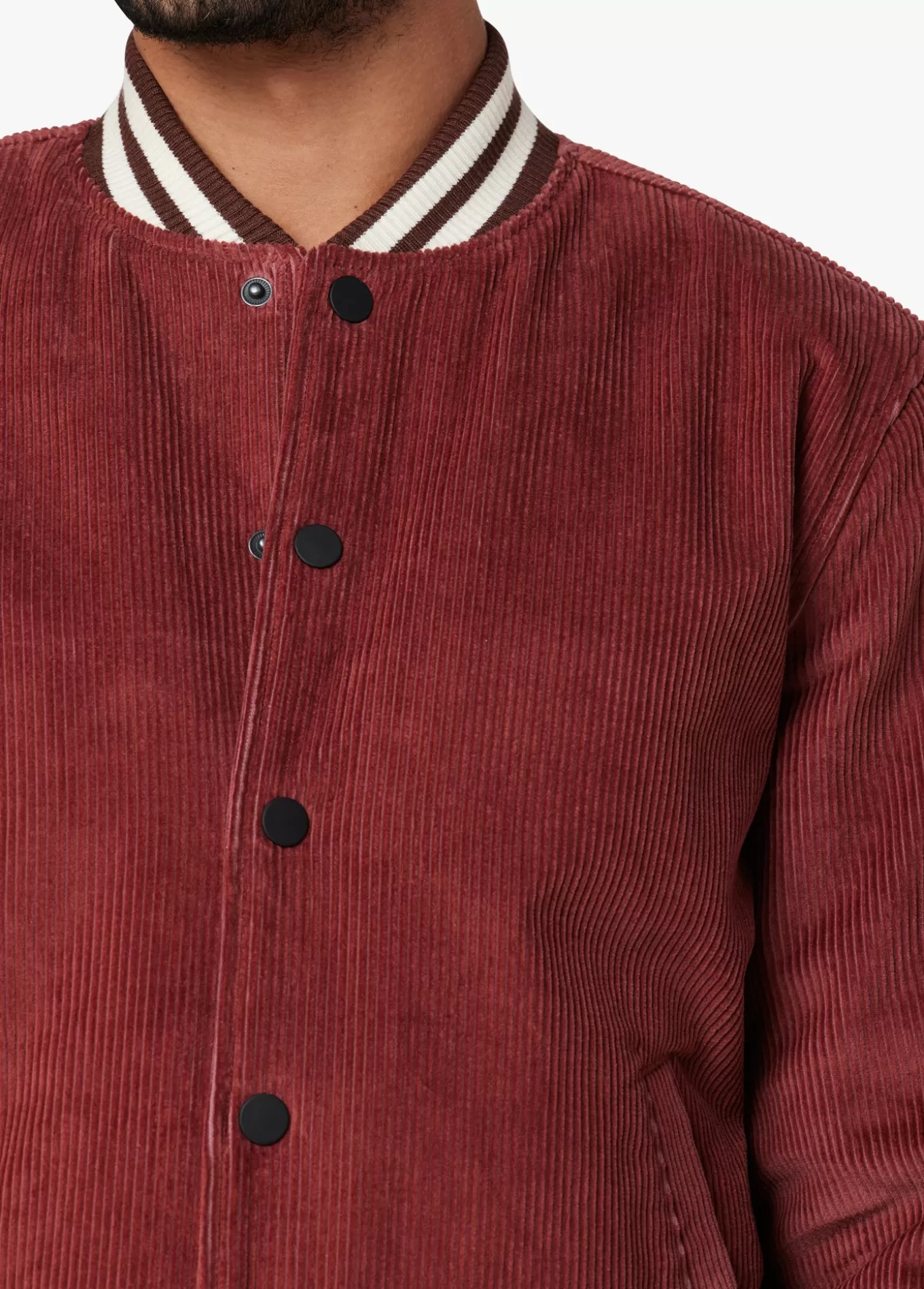 A little bit varsity, a little bit bomber jacket–the Ivy Cord Bomber is styled with a two-tone ribbed collar and cuffs and is made from a faded red, wide wale corduroy. Interior quilting makes the bomber extra warm and the black rubber snaps add a subtle modern touch to this nostaglic style.100% COTTONMODEL IS WEARING