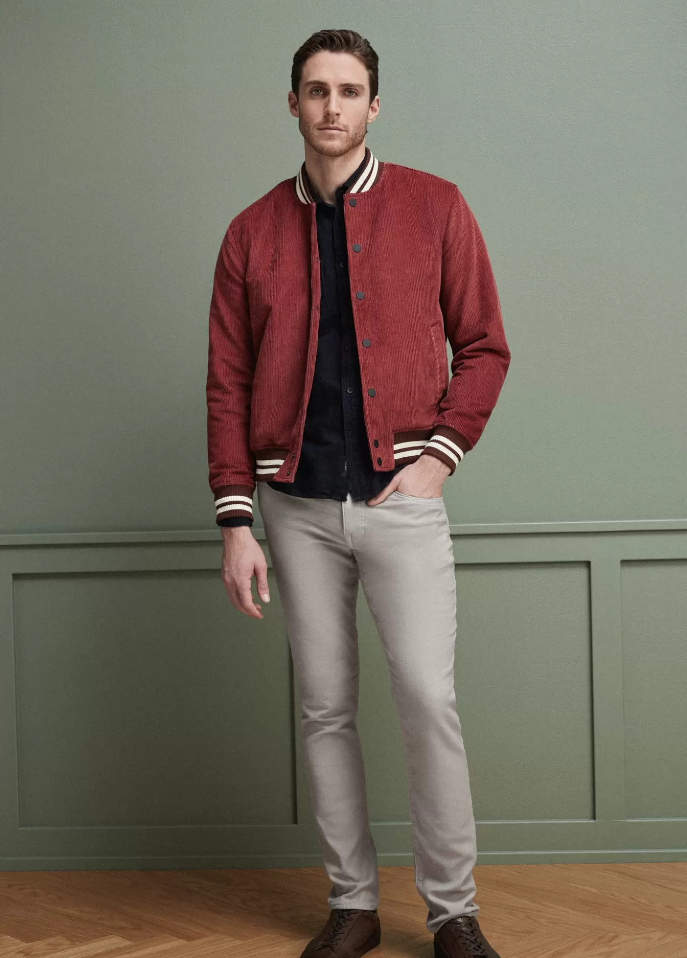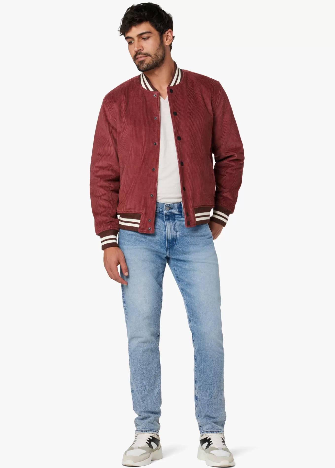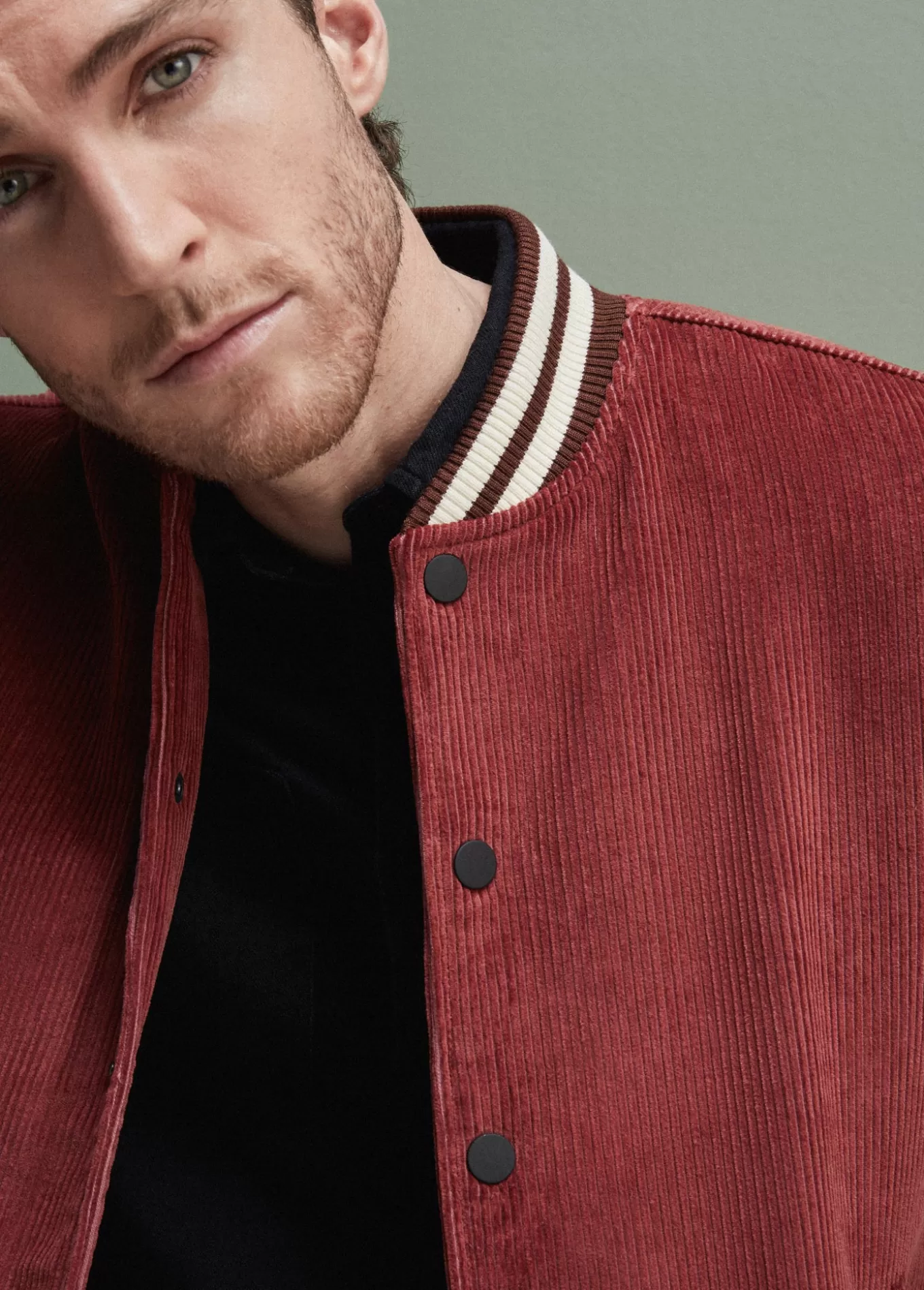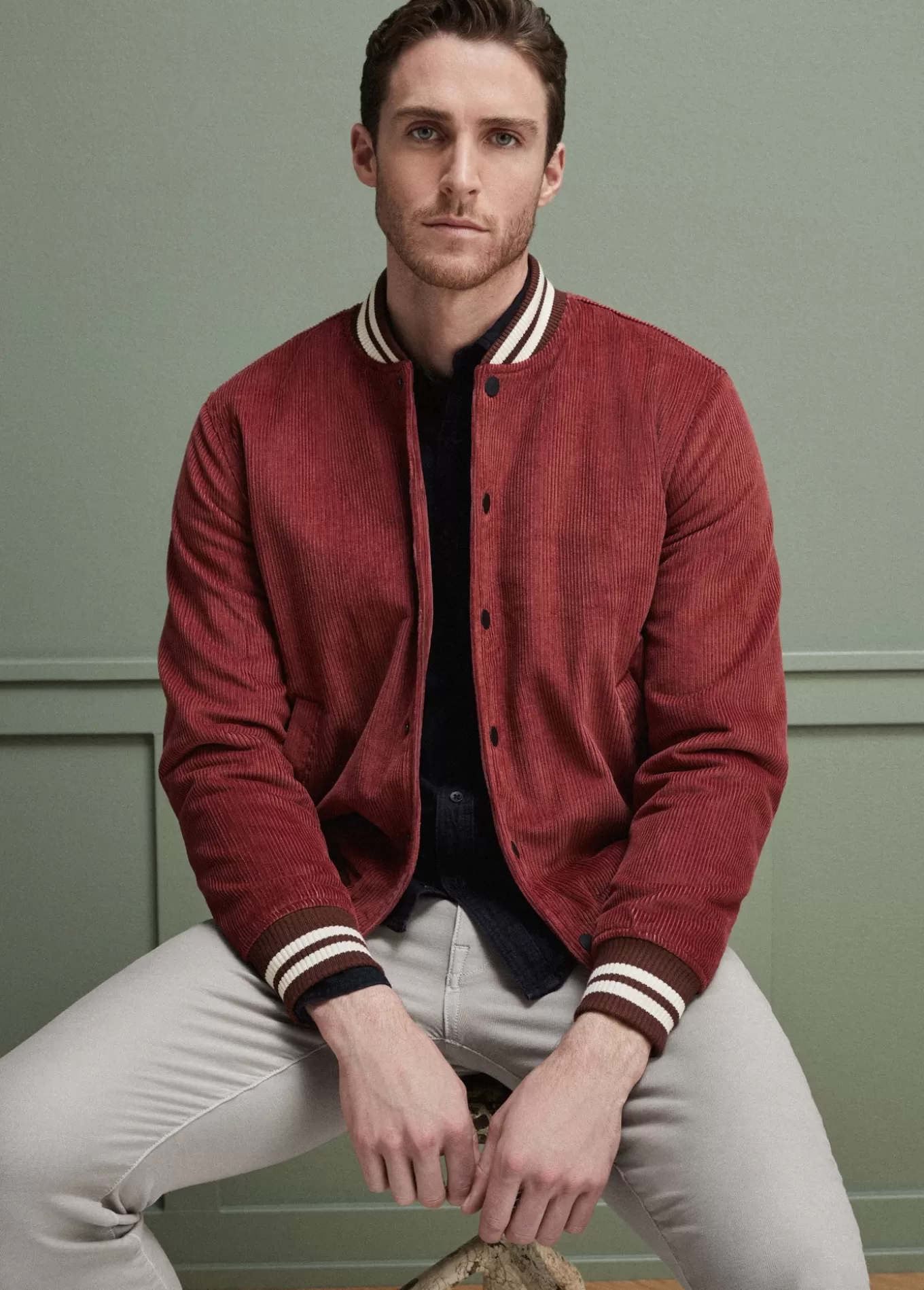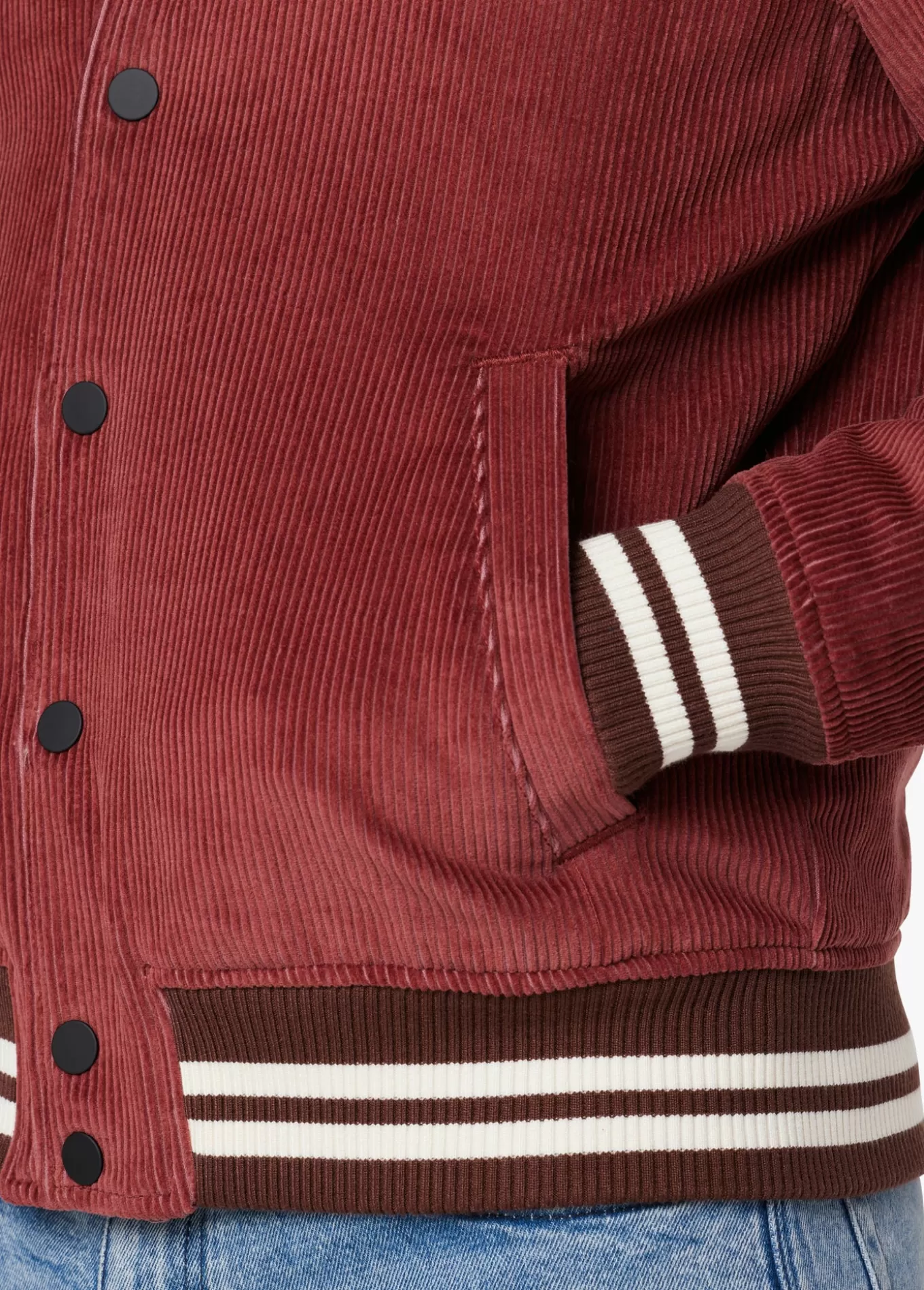 A little bit varsity, a little bit bomber jacket–the Ivy Cord Bomber is styled with a two-tone ribbed collar and cuffs …