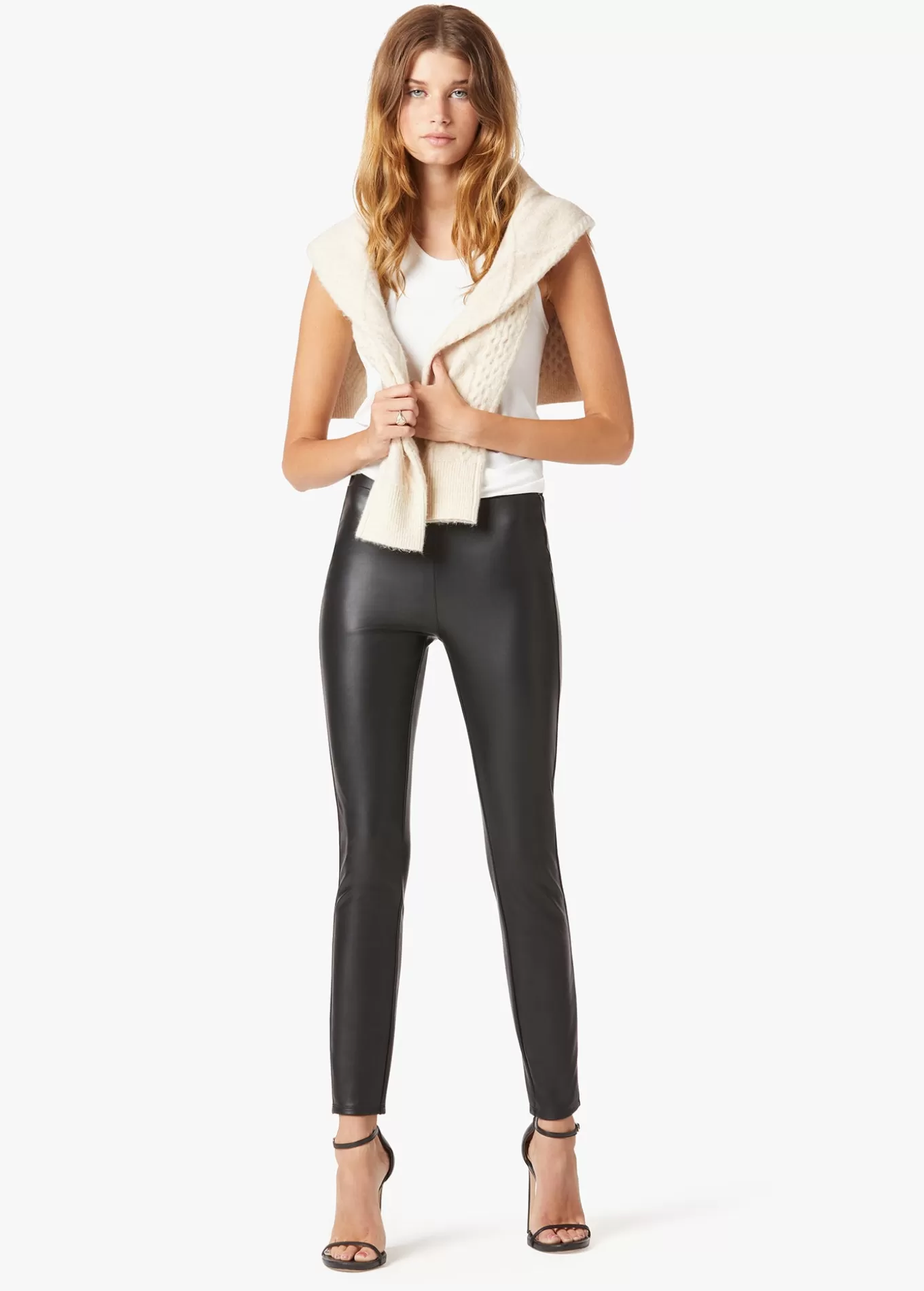 High style meets high comfort in the Korey faux leather legging. The sleek, black pull-on leggings have an elastic back waistband for added comfort and slimming, curve-hugging fit with a luxe, looks-like-leather feel. 100% Vegan Faux LeatherMODEL IS WEARING SIZE SMALL