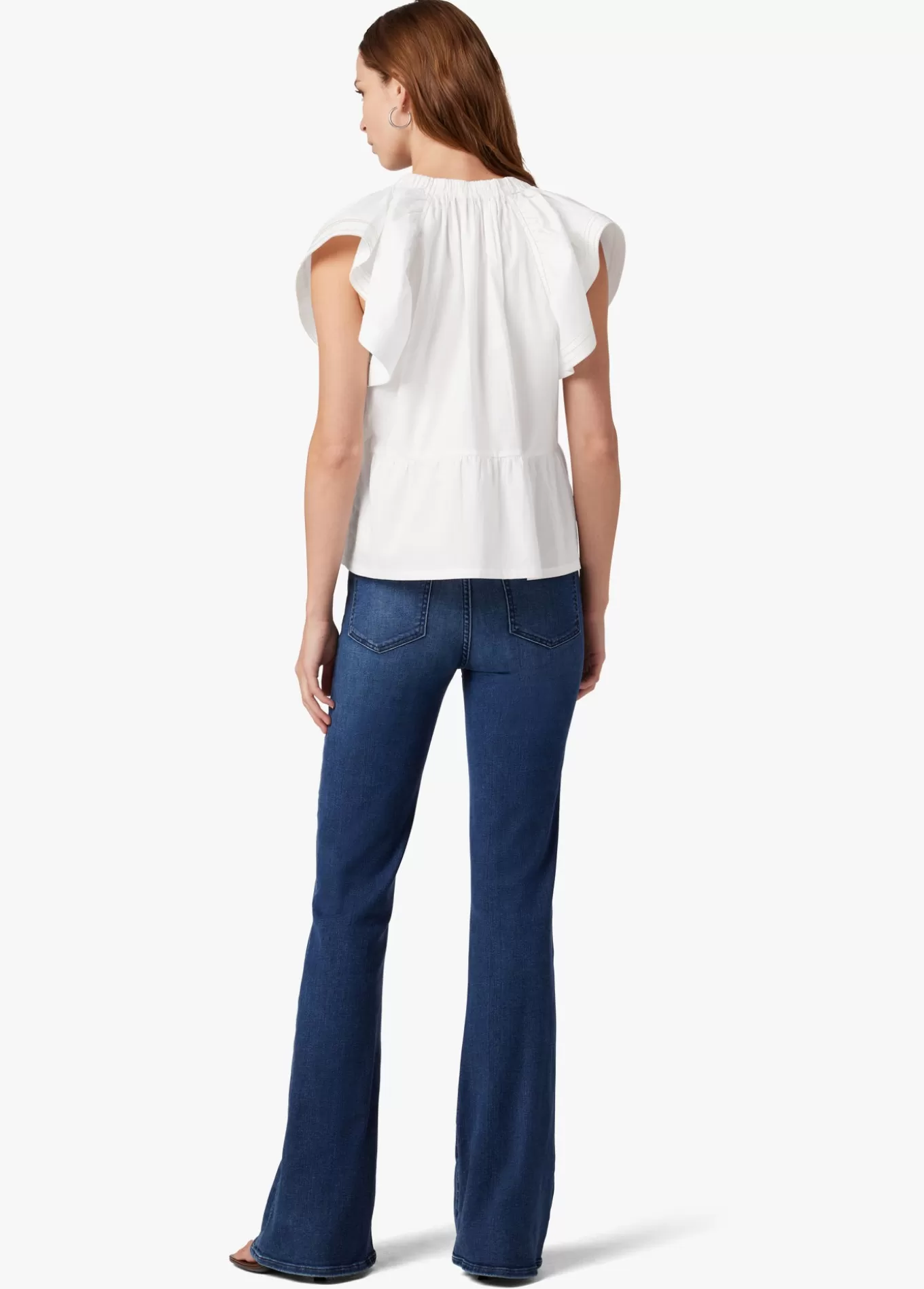 The Adelyn pairs perfectly for every spring fling. Set in a crisp 'Optic White' and finished with flutter sleeves and contrast topstitching, this top is part of our Earth Conscious collection so it was crafted using materials that are gentler on our planet. 100% CottonMODEL IS WEARING SIZE Small
