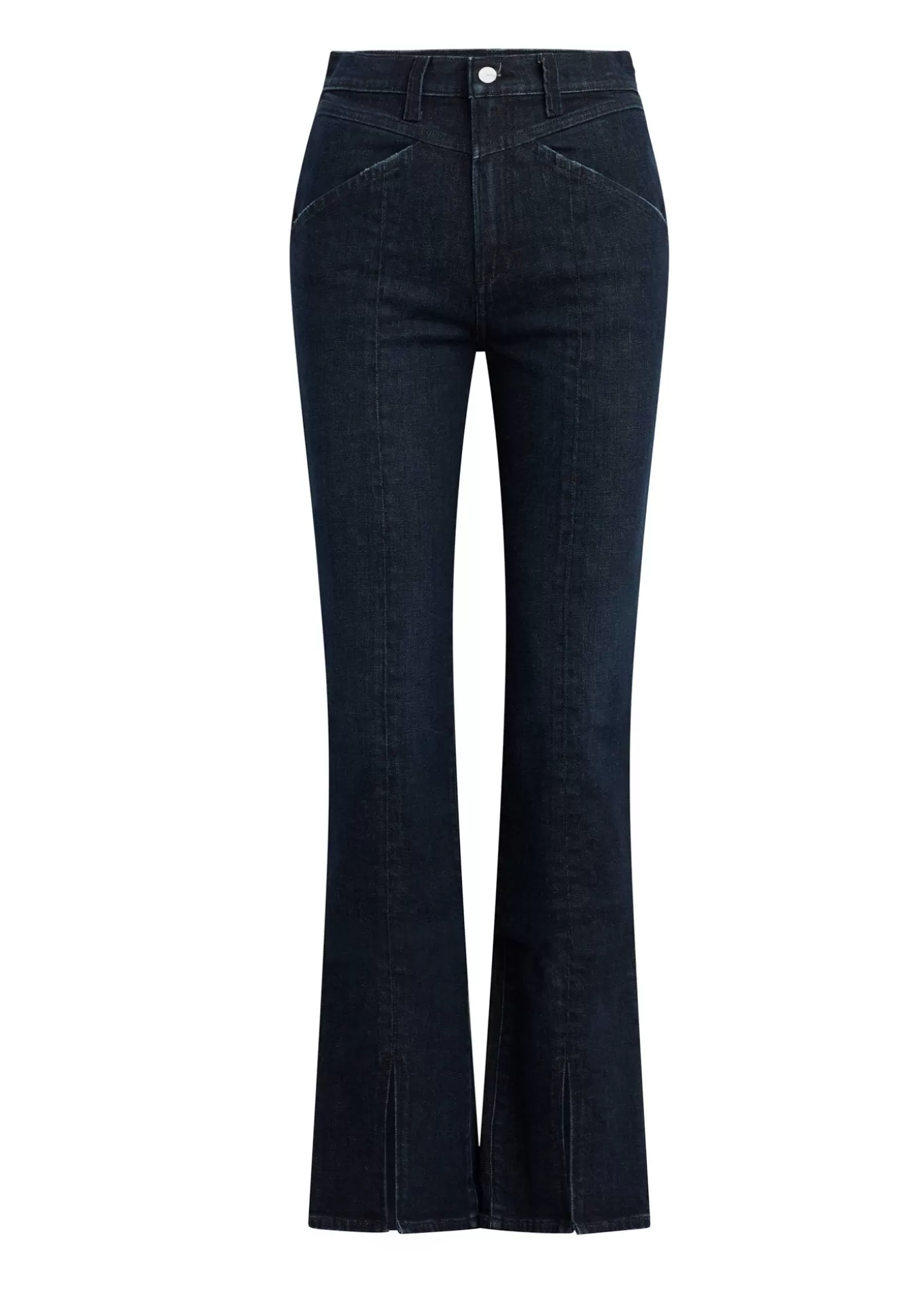 A bootcut with some kick. Center hem slits for peek-a-boo styling, slant pockets and seam details add dimension to the deep enzyme wash of 'Bend'. The Alexis is finished with local hand sanding to create depth to the dark wash. 11; RISE33; INSEAM99% Cotton, 1% ElastaneMODEL IS WEARING SIZE 26 11; front rise 14 1/4; bac