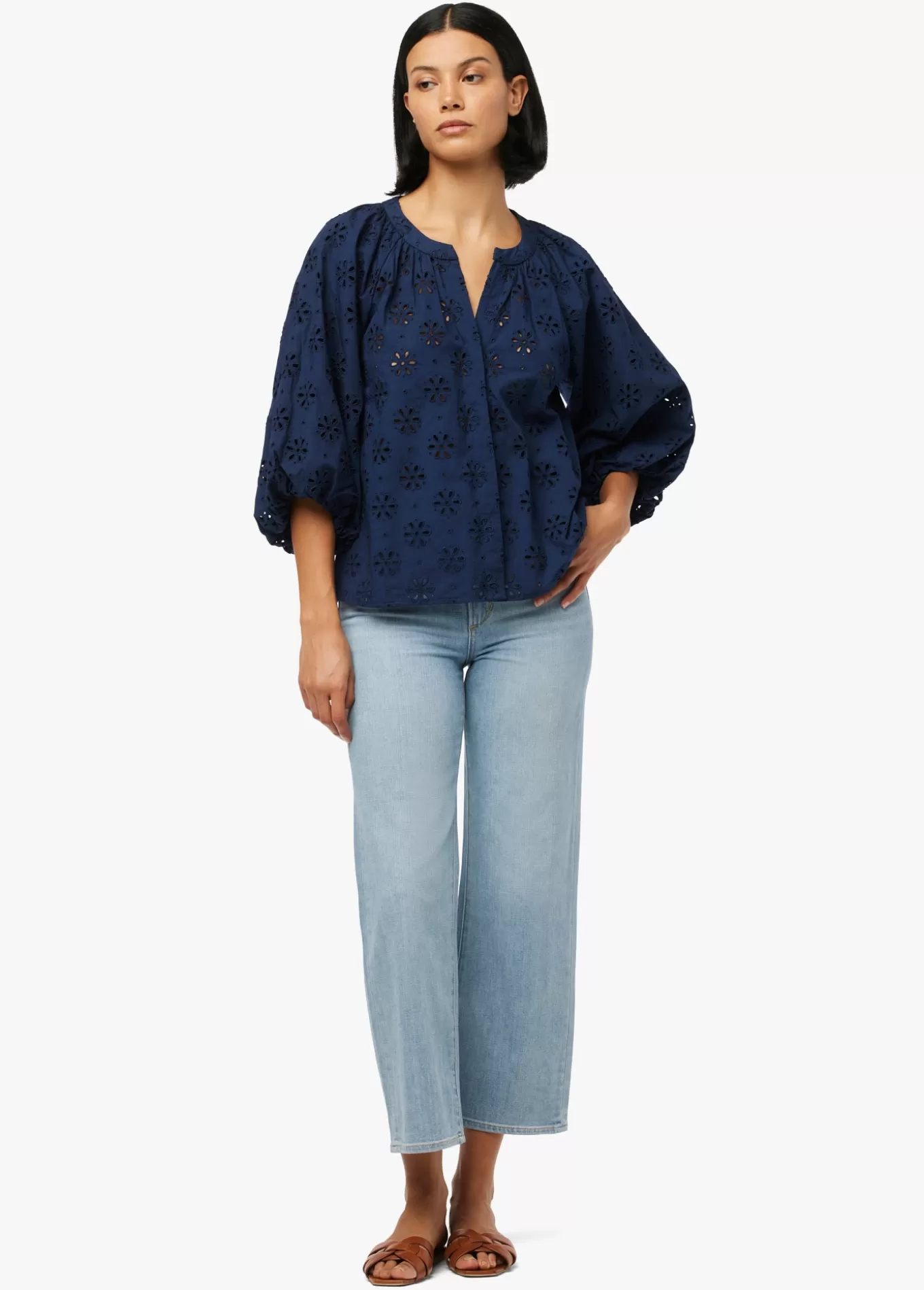 The Andie Broderie Blouse features playful bubble sleeves and an easy A-line cut. Done in a beautiful 100% organic cotton broderie, this Pageant Blue top is part of our Earth Conscious collection of garments made with gentler practices.100% Organic CottonModel is wearing size Small