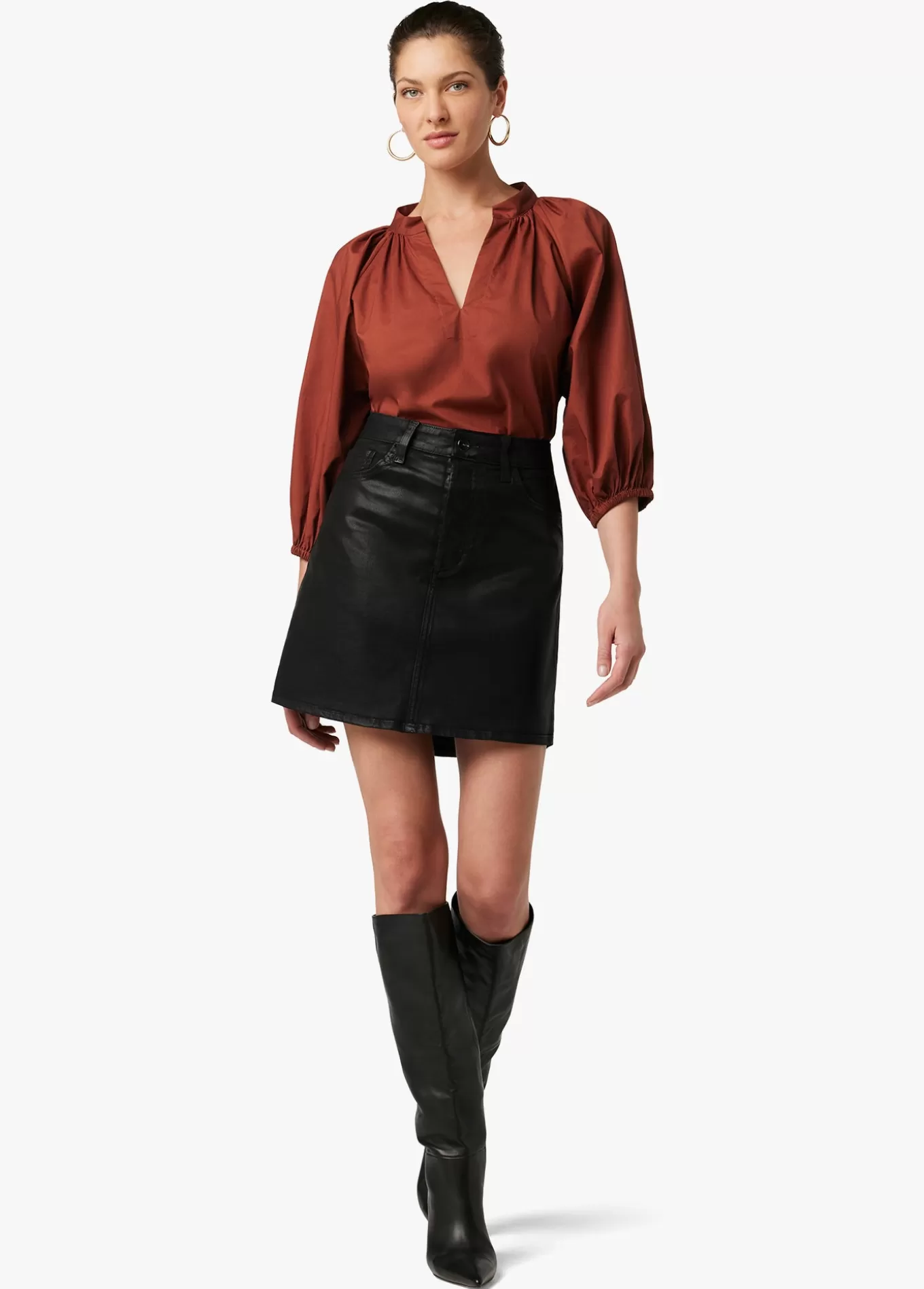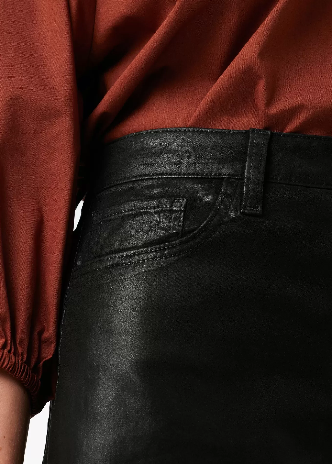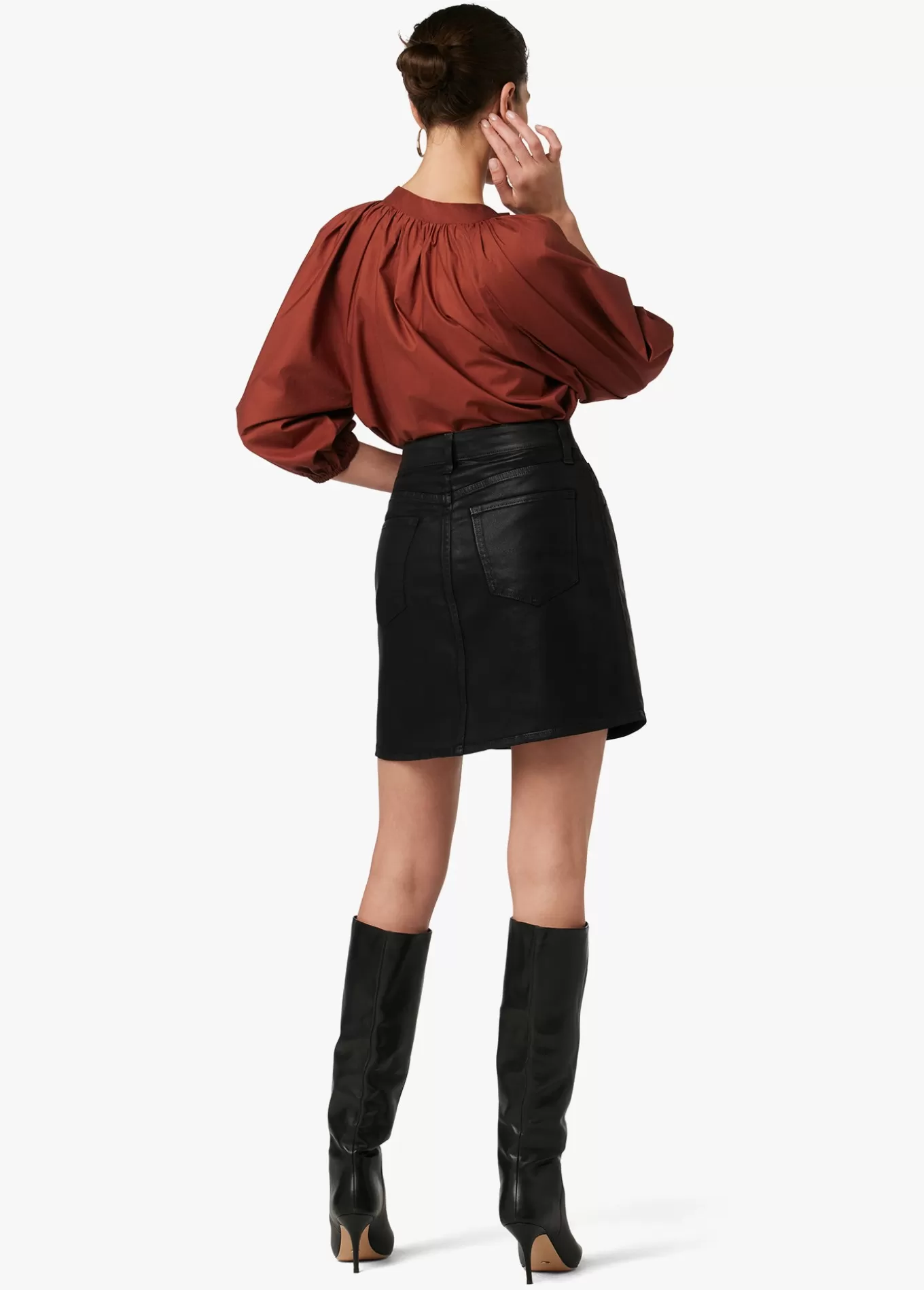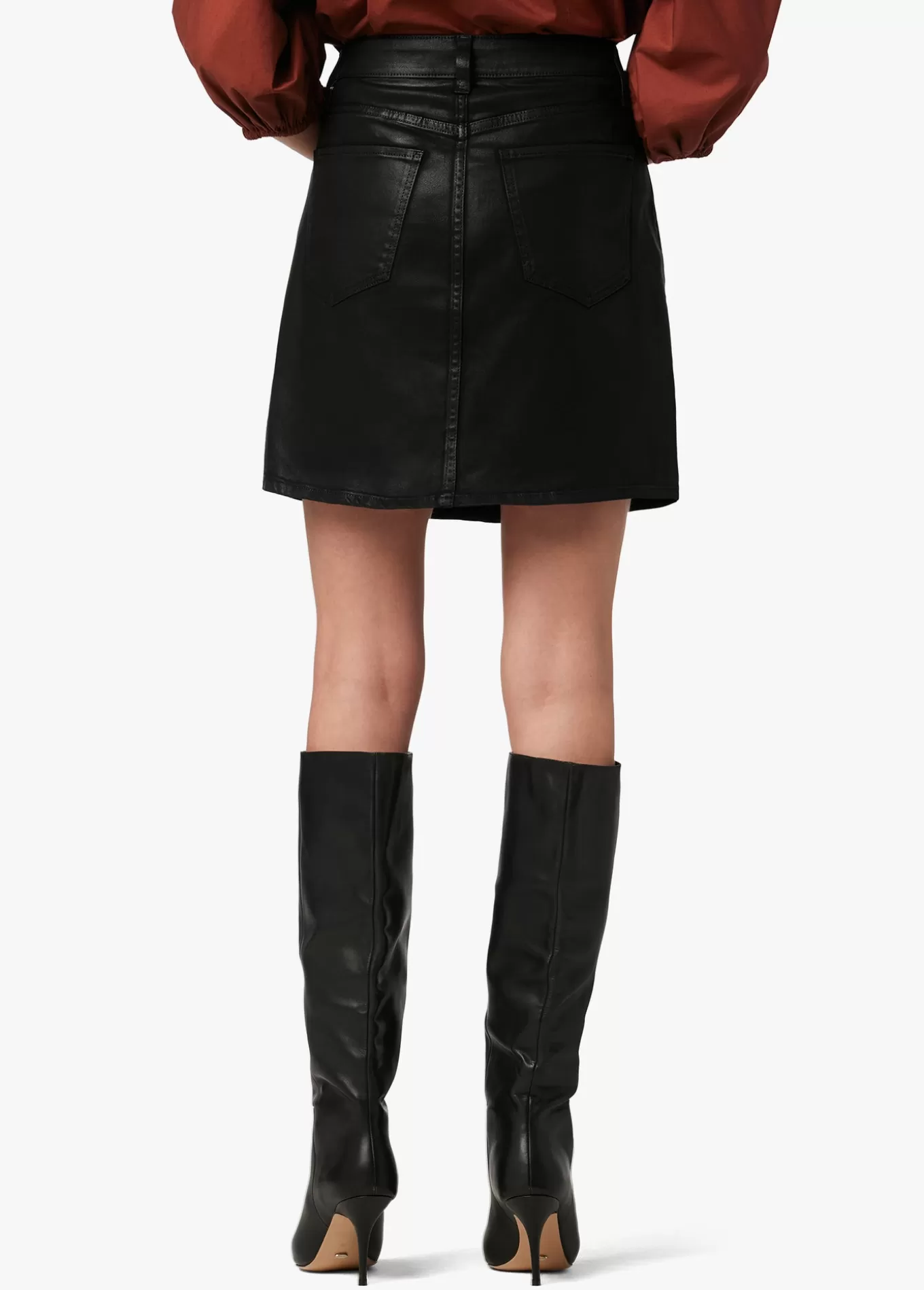 A classic, everyday denim skirt that makes a statement. The button-fly Jessica Skirt in Black is coated for a subtle sheen that will elevate any outfit. 17; RISENA INSEAM79% Cotton, 18% Modal, 3% ElastaneMODEL IS WEARING SIZE 26 17; rise