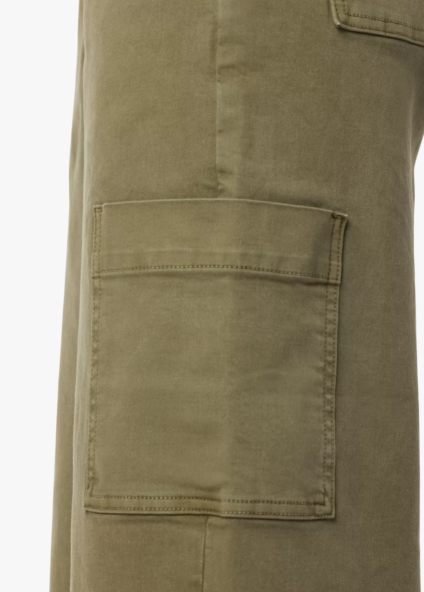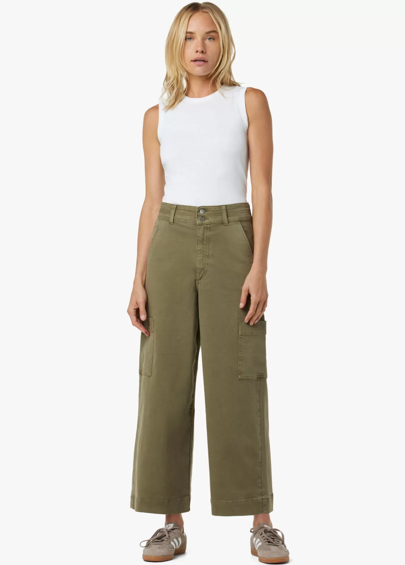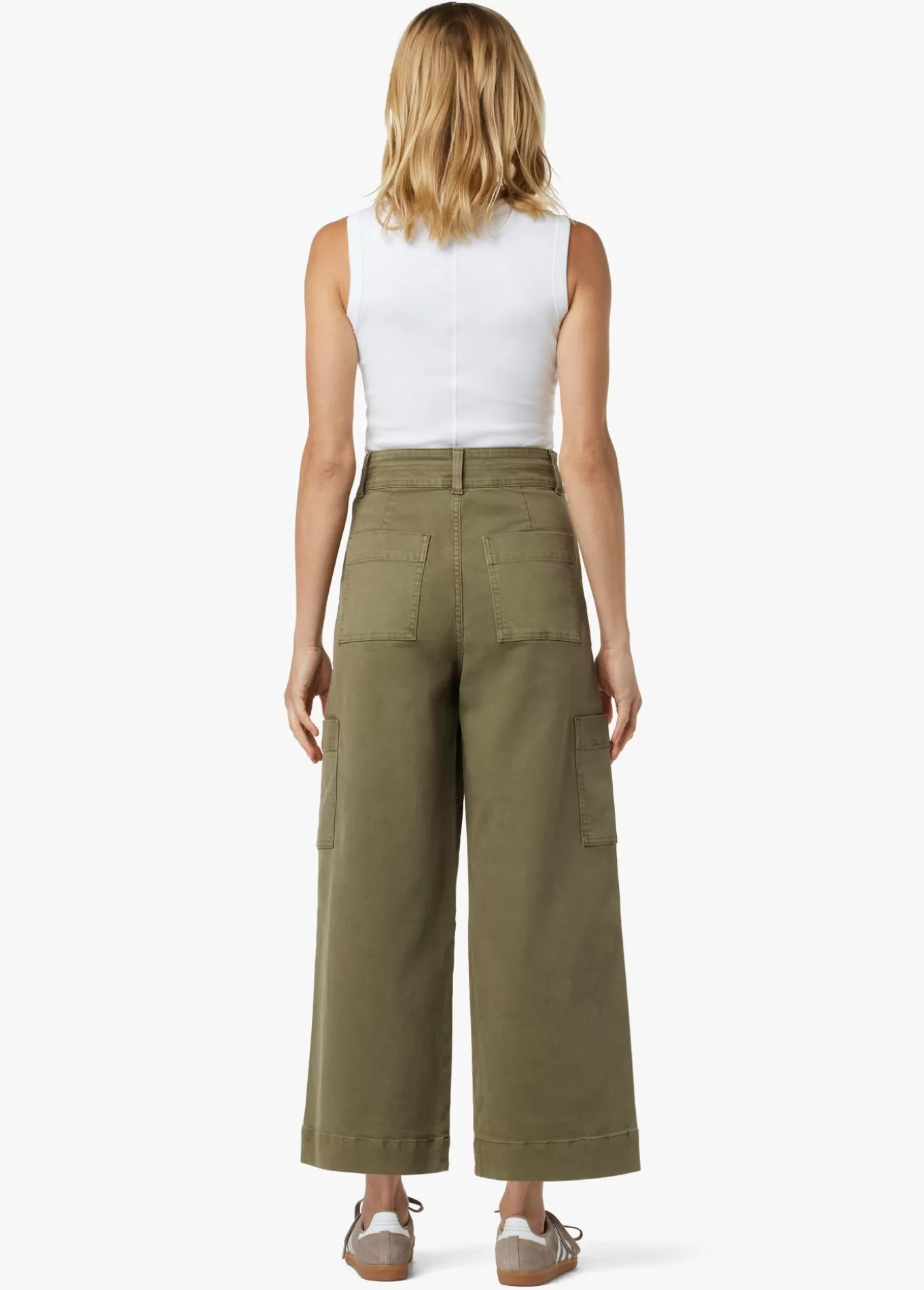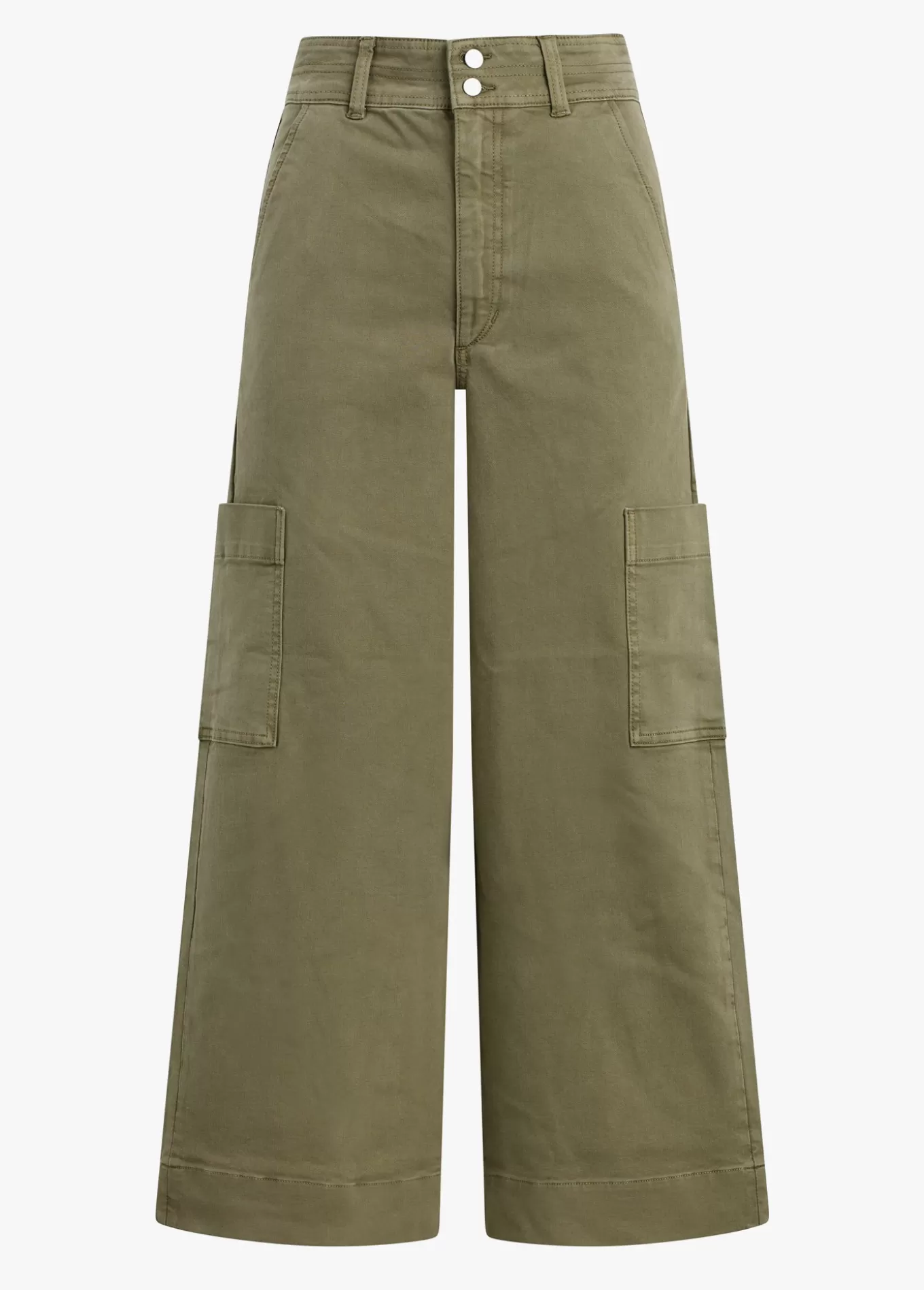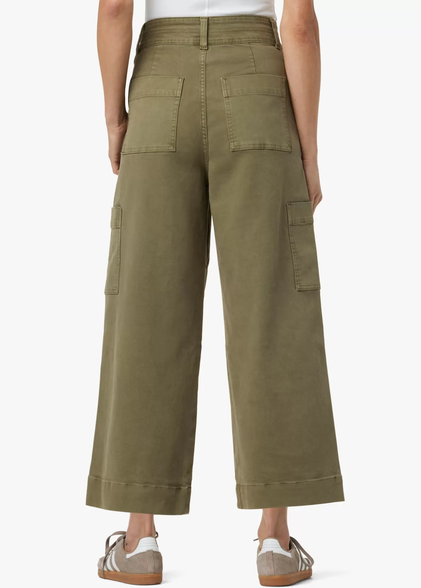 The Milla Utility Wide Leg Crop features a high rise, slant trouser pockets, a wide double button waistband, and stitch detailing. With exposed ankles, the cropped length blends style and casual comfort. Finished in an earthy Burnt Olive, these utility pants add a touch of adventure to your everyday ensemble. Rise: 13;