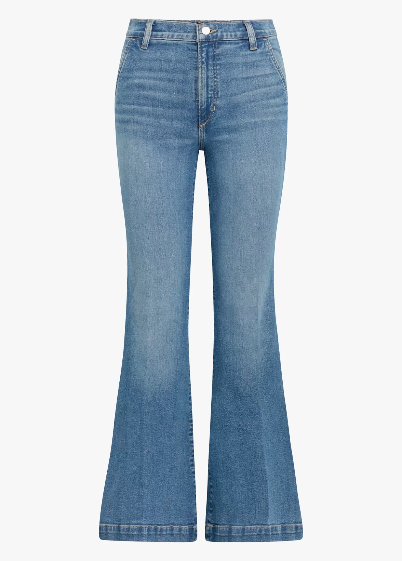 The Molly High-Rise Flare is fitted at the waist and kicked out at the wide hems, creating a curve-hugging ’70s-inspired silhouette. These forever flattering jeans feature stretch denim in a classic light wash, Sultry, and are complete with slant front pockets, grinding and subtle destruction.RISE: 10.25;INSEAM: 32;93%