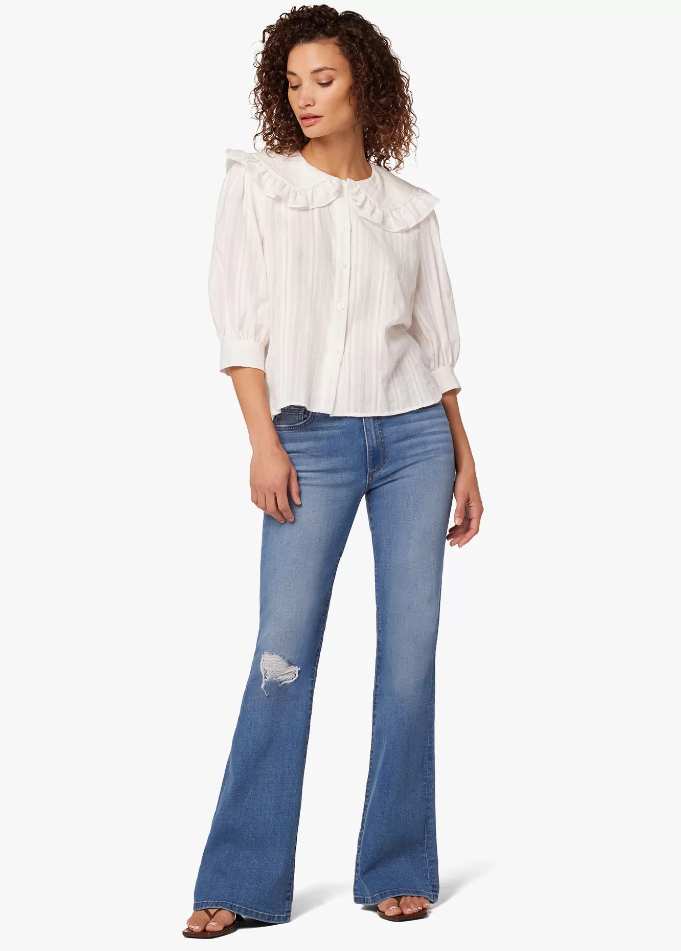 The Molly High-Rise Flare is fitted at the waist and kicked out at the hems, creating a curve-hugging ’70s-inspired silhouette. This five-pocket jean features our Flawless stretch denim for a comfortable fit. 10 1/4; RISE34; INSEAM60% Cotton, 18% Polyester, 21% Rayon, 1% SpandexMODEL IS WEARING SIZE 26 10 1/4; front ri