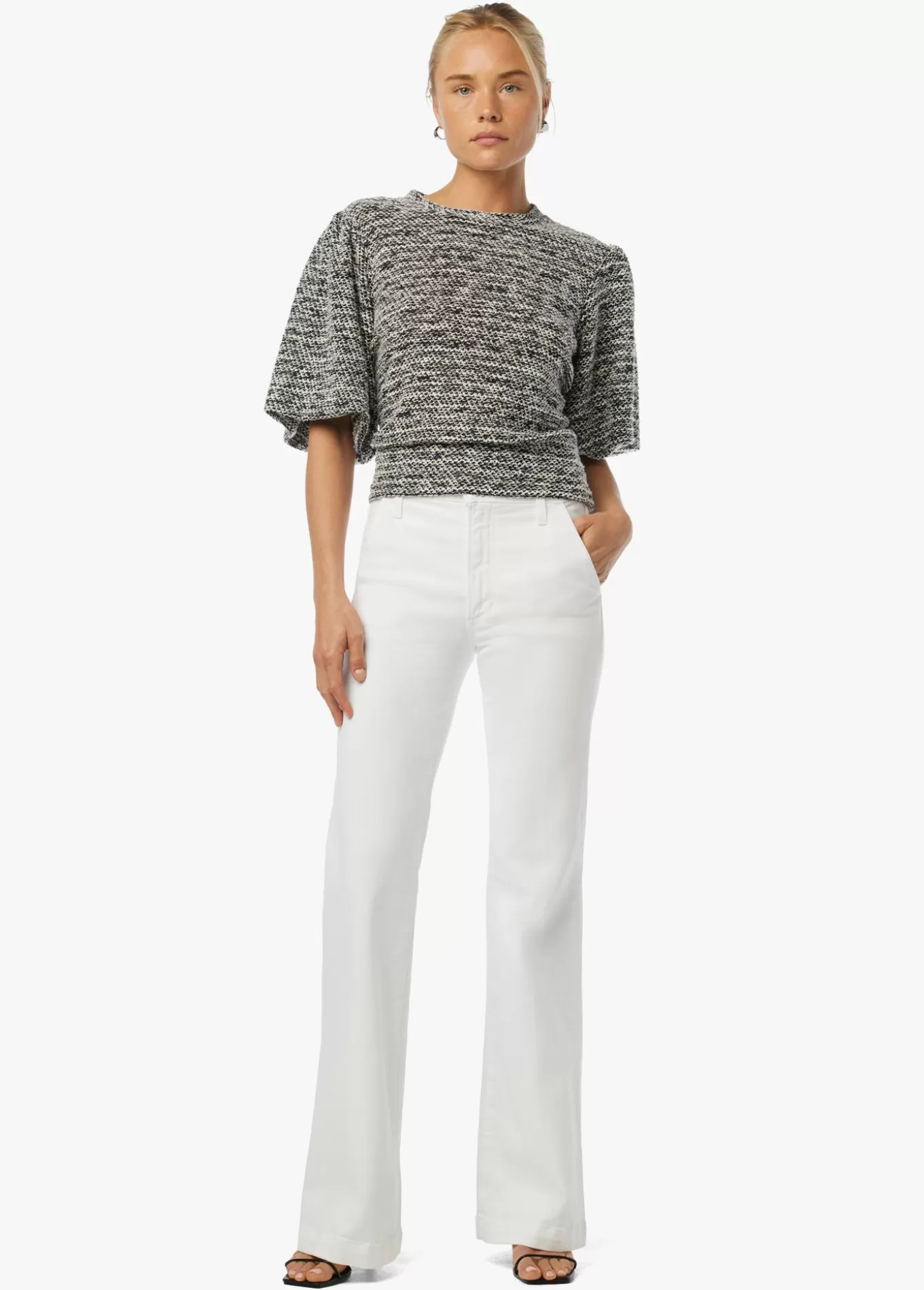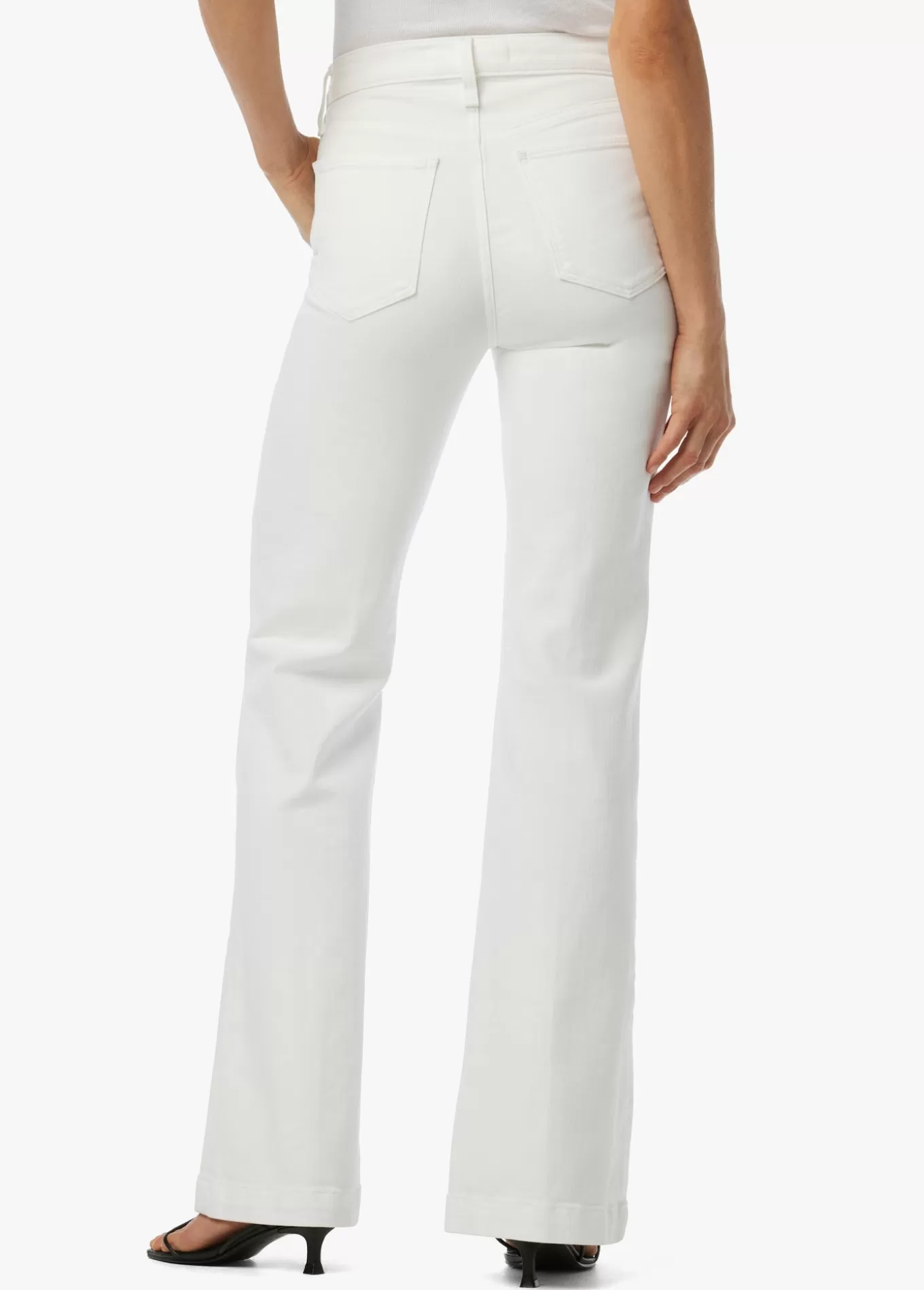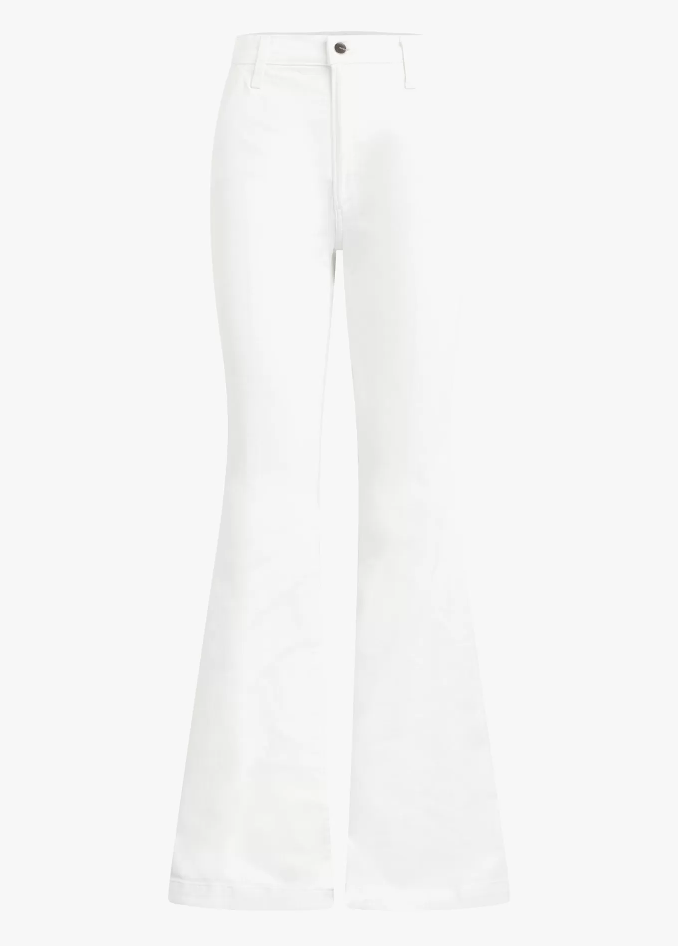 The Molly High-Rise Trouser is fitted at the waist and kicked out at the wide hems, creating a curve-hugging ’70s-inspired silhouette. These forever-flattering jeans feature Flawless super stretch denim in a pure white wash and are complete with slant front pockets. Rise: 10.25;Inseam: 32;90% Cotton, 8% Recycled Polyes