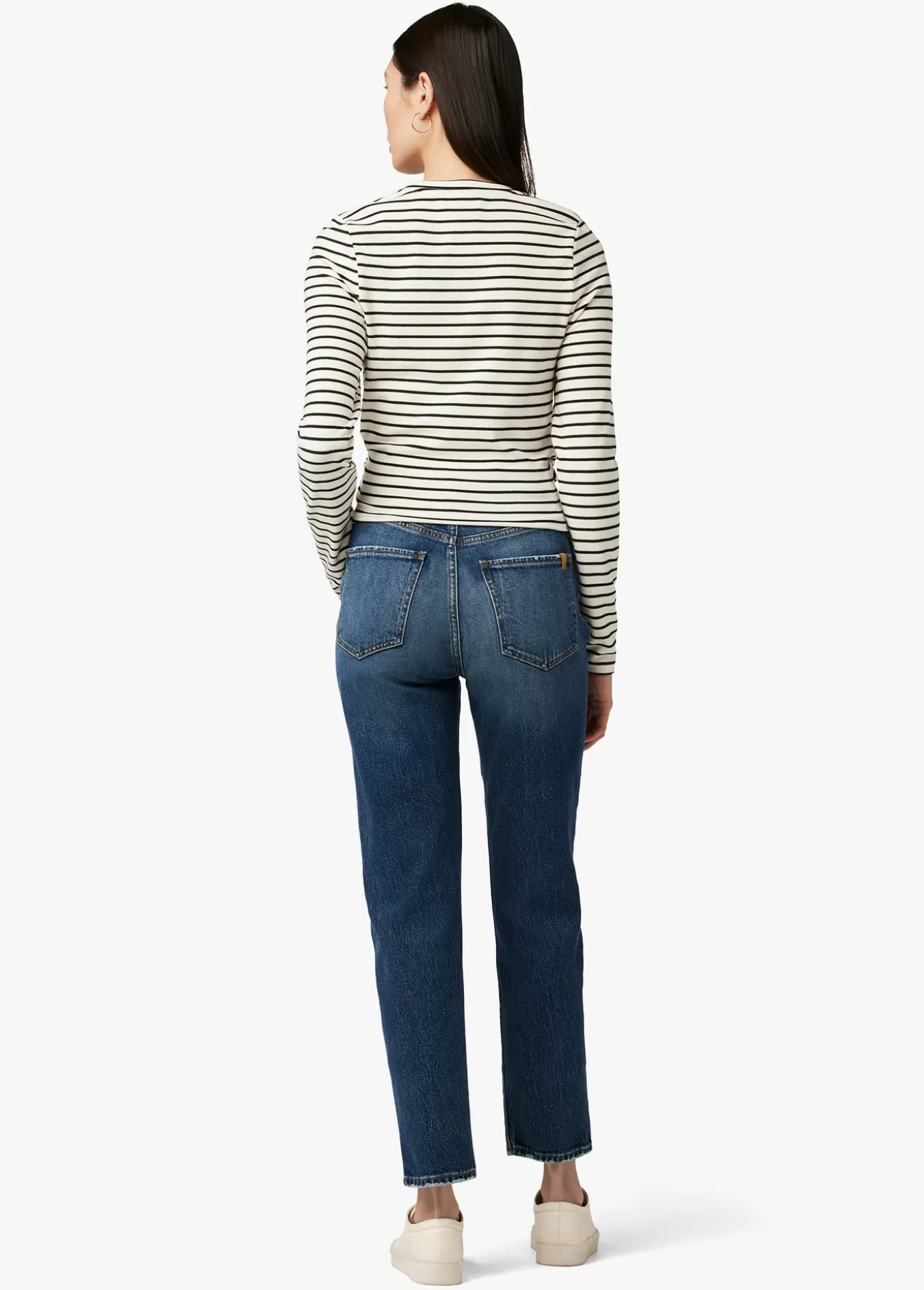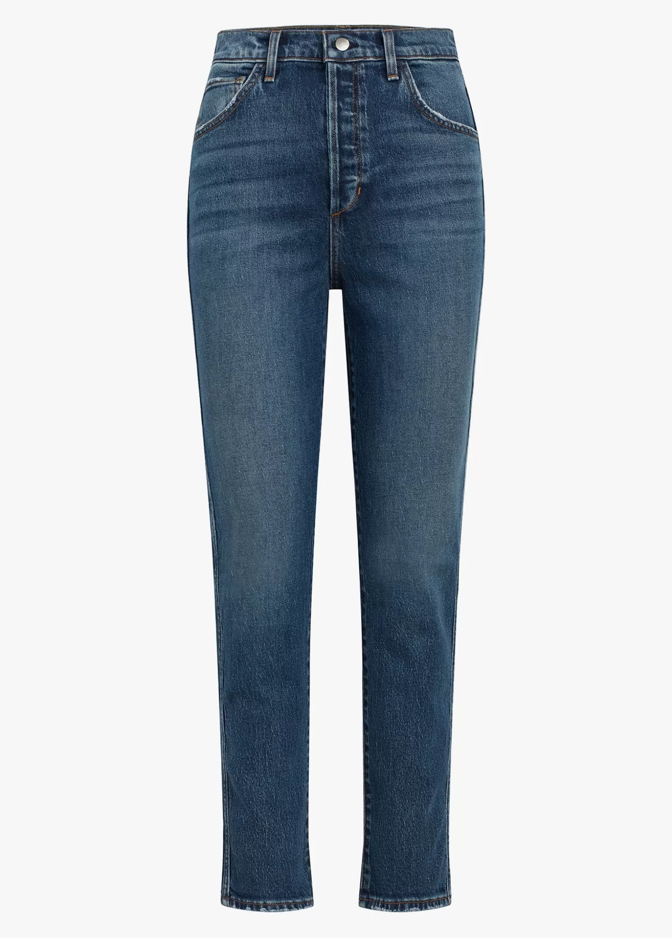 With a super high waist and a cigarette fit, the Raine Ankle is the most coveted denim style of the season. A stone wash, local grinding and whiskering creates surface character on the dark-medium Butter Cup wash that's cut from a comfortable Heirloom denim and finished with a button fly.11 1/2; RISE28; INSEAM76% Cotto