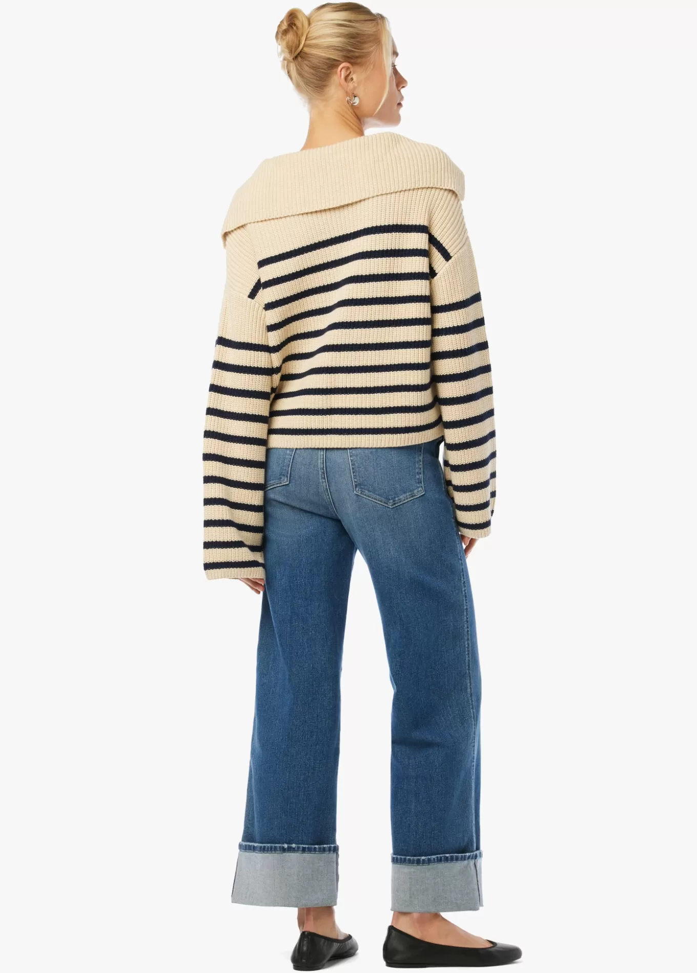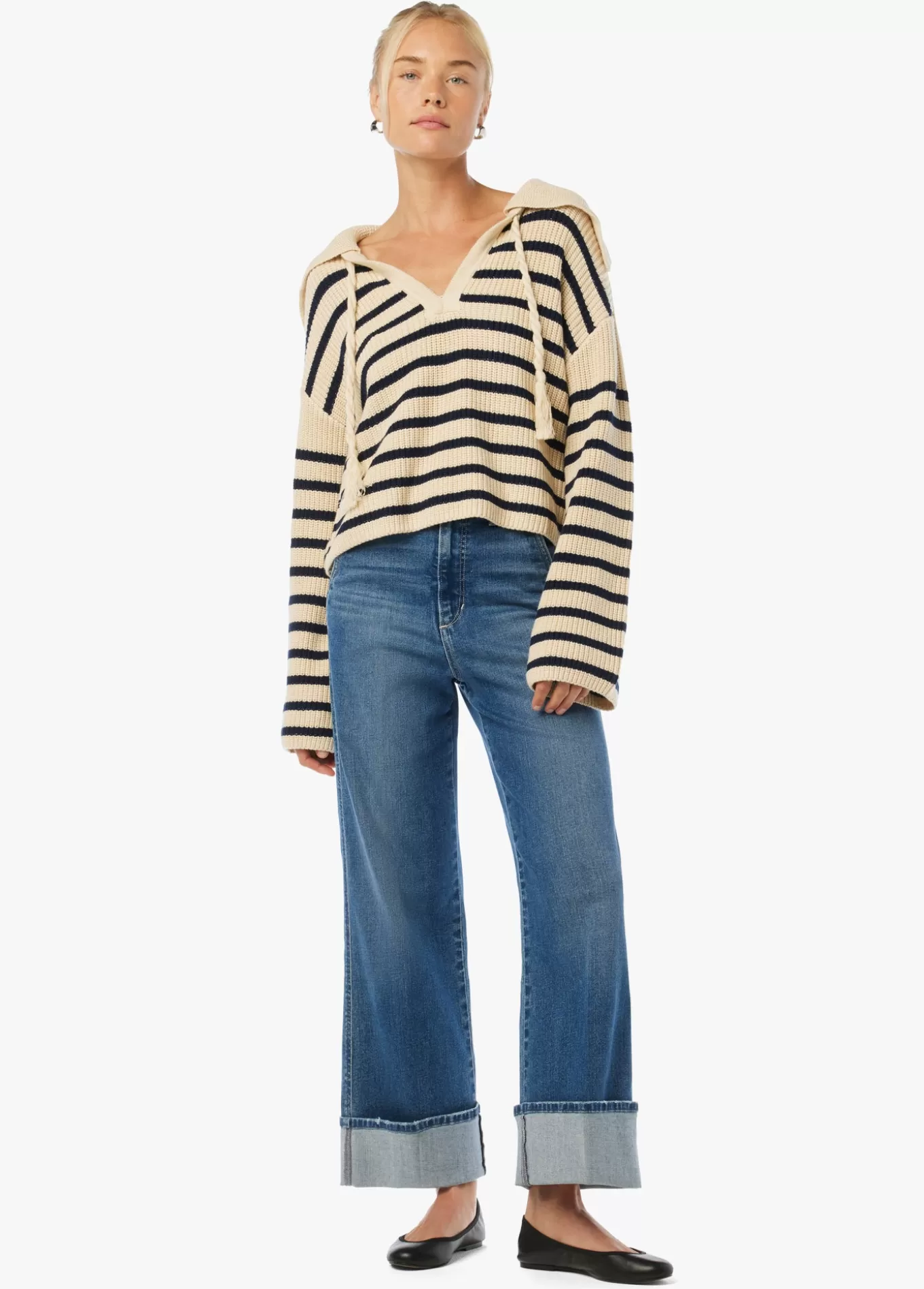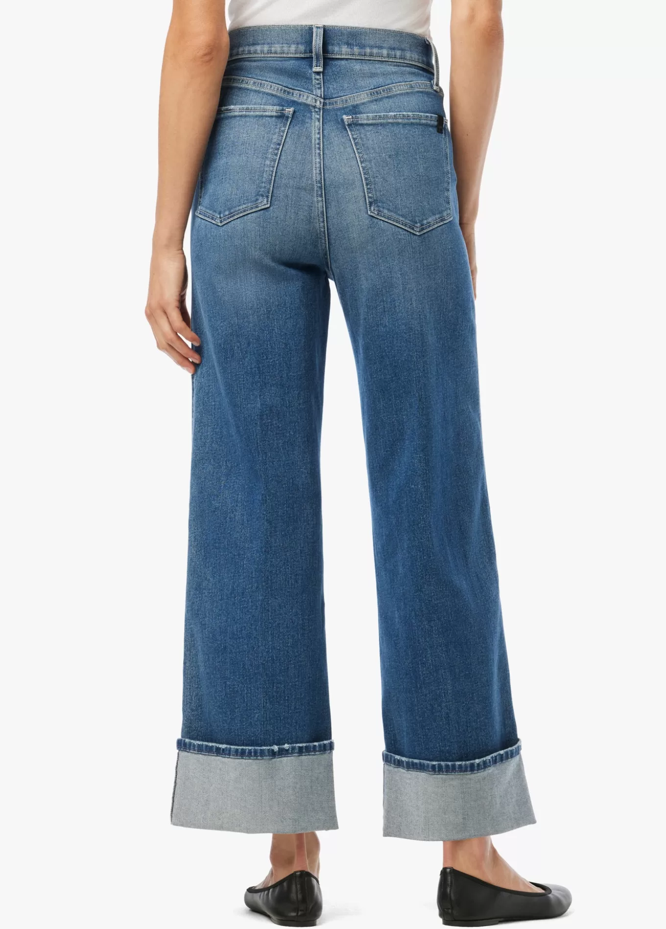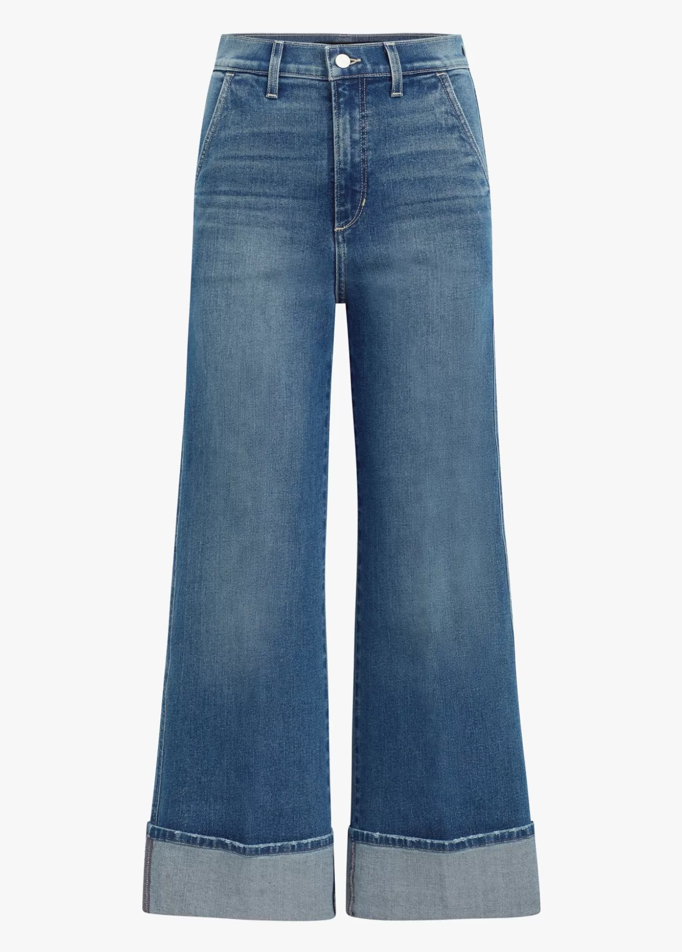 The new Trixie Trouser in medium shade, First Bite, is complete with slant trouser pockets and 4; wide cuffs that are tacked at the seams to keep the crease. Designed to accentuate your silhouette with a flattering high waist, these jeans fall to a wide leg cut, making them the ideal wardrobe staple for both casual and