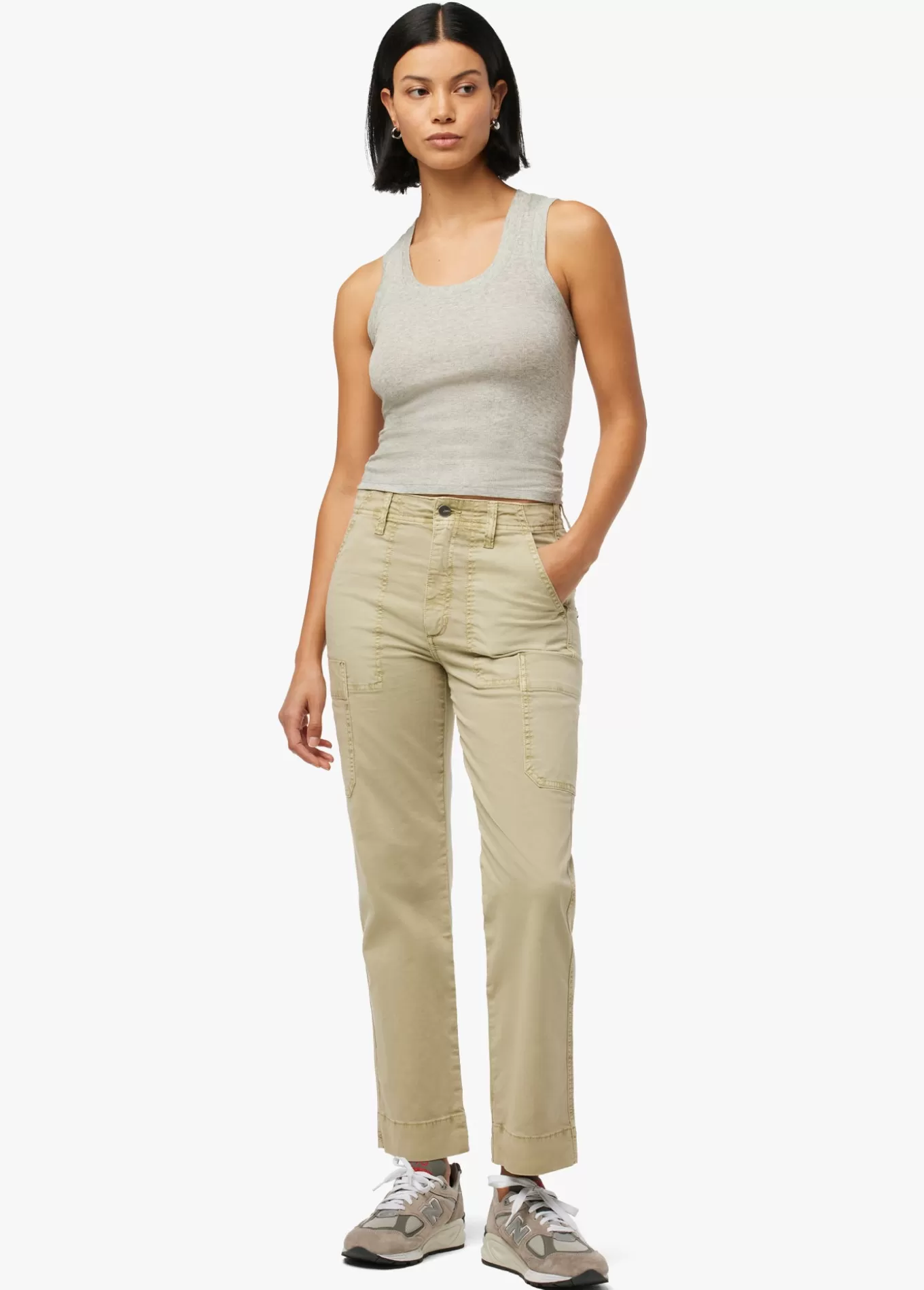 The new Utility High Rise Straight Leg in Elm is overdyed to a cool neutral with comfort stretch built in. Sitting high on the waist with a Hollywood-constructed waistbang and oversized utility pockets, this pant is crafted to fall straight through the legs giving that clean silhouette. Rise: 10.25;Inseam: 28;98% Cotto